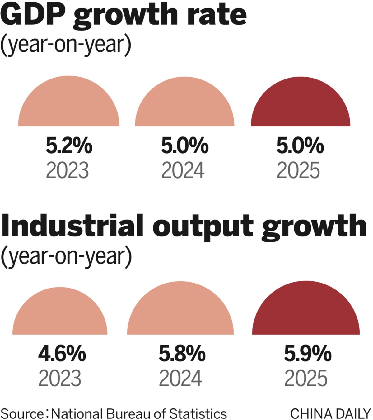 NBS data showed that China's value-added industrial output rose 5.2 percent in December, following 4.8 percent growth in November.