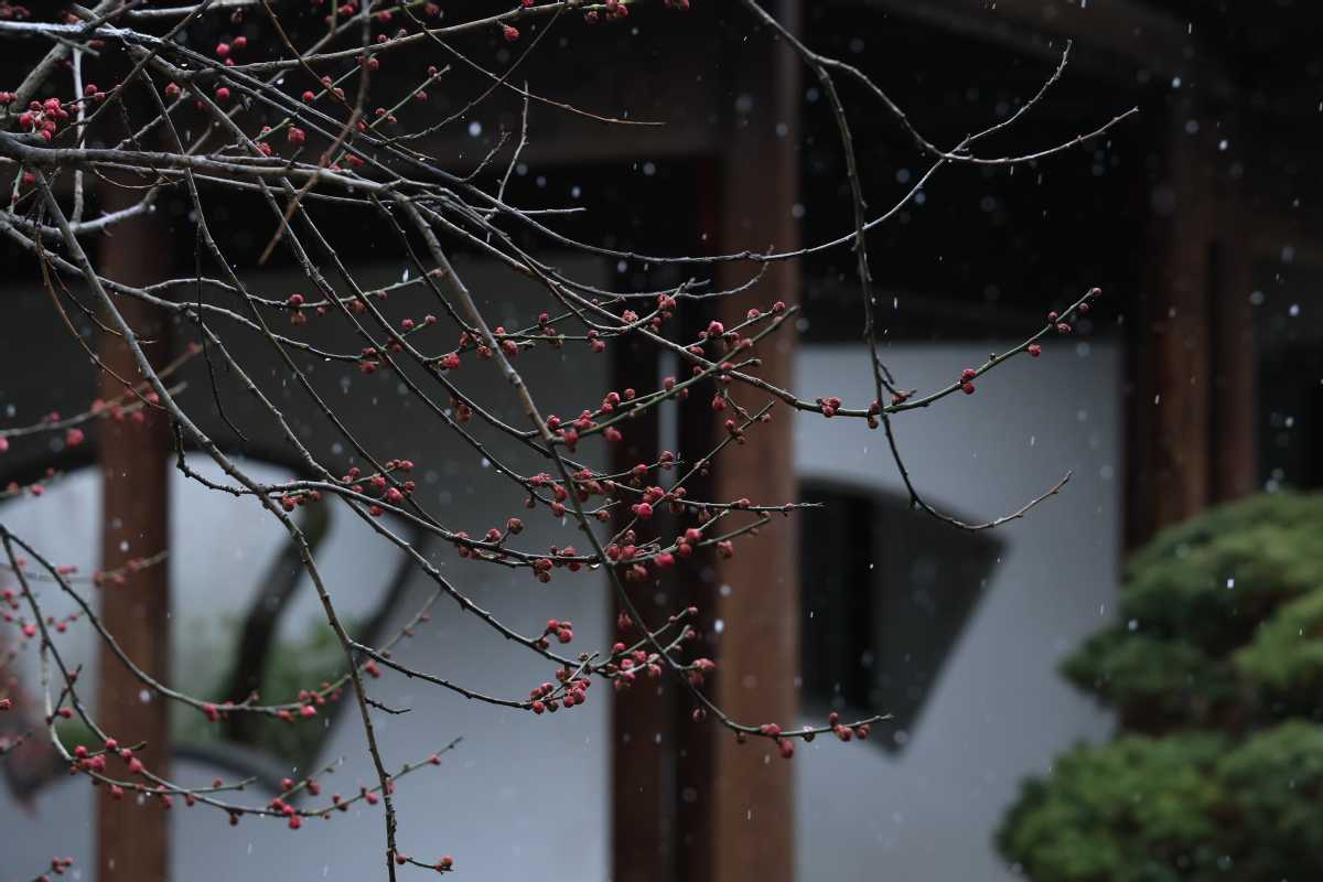 Residents of Hangzhou in eastern China were treated to steady snowfall on Monday, as temperatures dropped during the region's coldest period, known as Dahan, or the Great Cold.