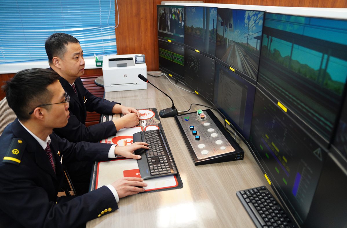 A train driver conducts simulation driving exercises at the simulation training base in Beijing, capital of China, Jan 20, 2026. With the approach of the Spring Festival, high-speed train staff members in Beijing are engaging in busy preparations to better serve the Spring Festival travel rush. [Photo/Xinhua]