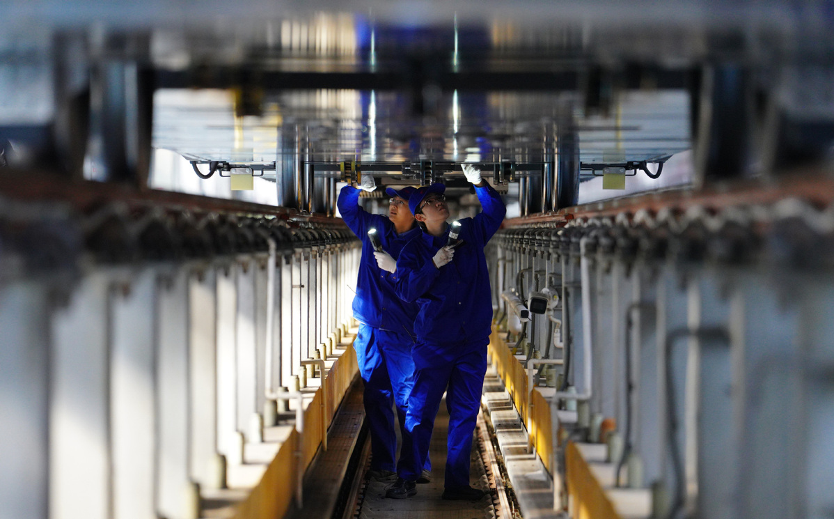 Staff members conduct maintenance work at a high-speed train base in Beijing, capital of China, Jan 20, 2026. With the approach of the Spring Festival, high-speed train staff members in Beijing are engaging in busy preparations to better serve the Spring Festival travel rush. [Photo/Xinhua]