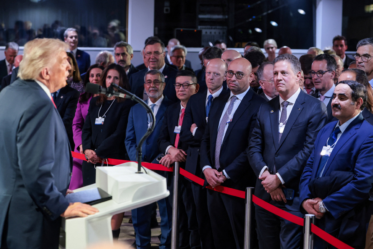 Attendees listen to US President Donald Trump speaking during a reception with business leaders, at the 56th annual World Economic Forum (WEF), in Davos, Switzerland, Jan 21, 2026. [Photo/Agencies]