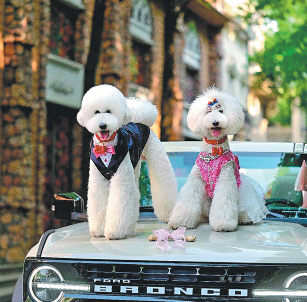Bai Yu and his wife Ju Jie hold a wedding ceremony for their pet dogs Elio and Mira in Hangzhou, Zhejiang province. CHINA DAILY