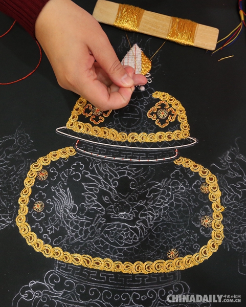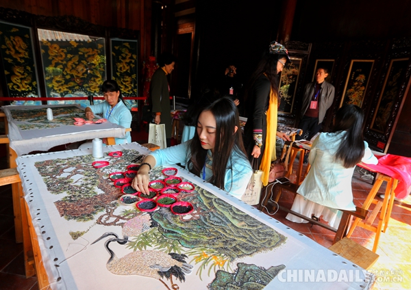 传统刺绣工艺展示。