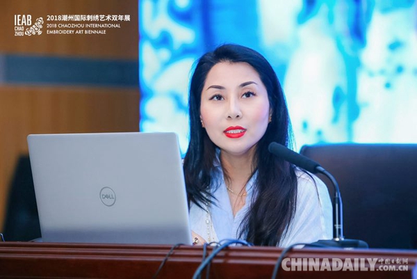 中国日报12月25日电 12月20日下午,2018潮州国际刺绣艺术双年展在广东开幕。本届双年展的主题为“刺绣与当代生活”。开幕当天一堂精彩的非遗公开课在位于广东潮州的韩山师范学院国际会议中心开课。来自刺绣界的国内外刺绣艺术家共同探讨“刺绣与当代生活”这一主题。