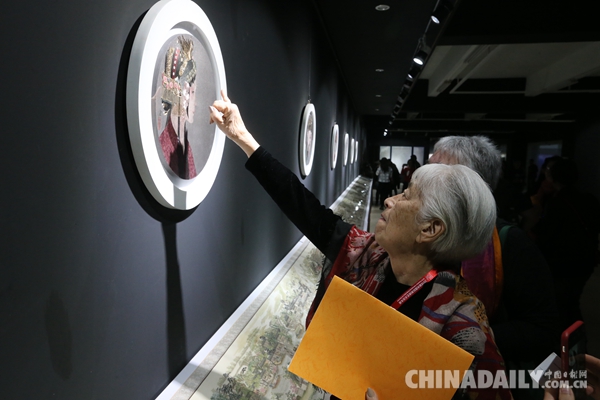 参观者欣赏刺绣艺术品。
