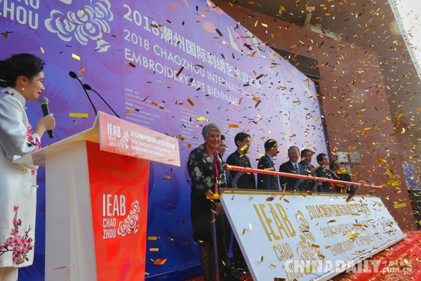 12月20日下午,2018潮州国际刺绣艺术双年展在广东开幕。
