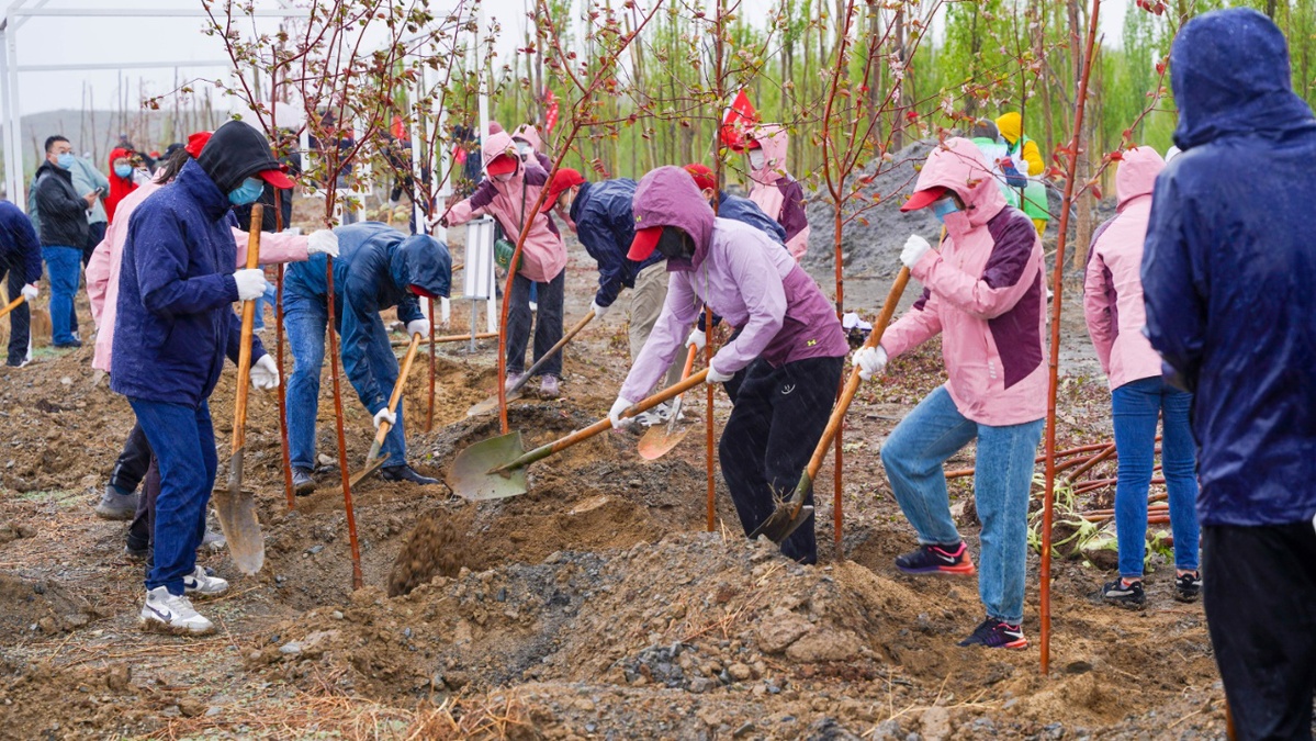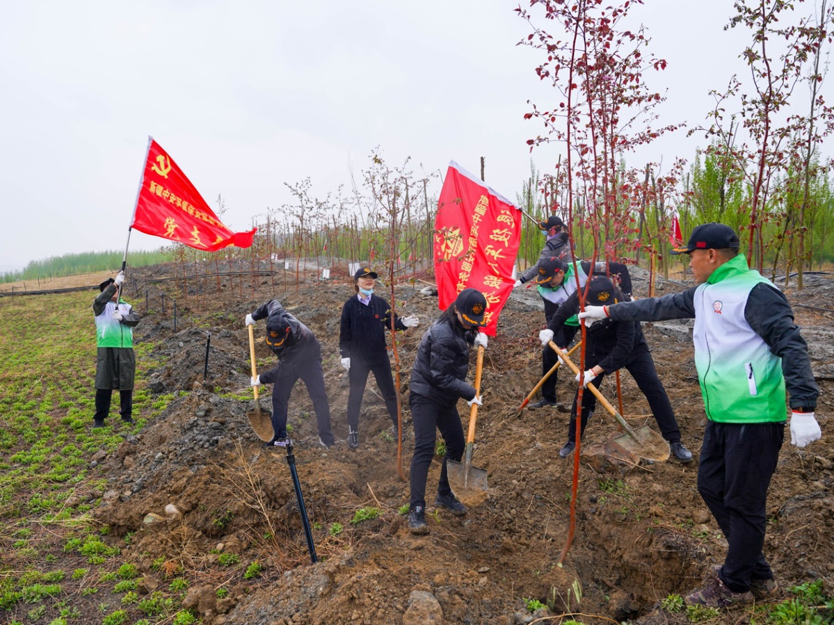 中国日报乌鲁木齐4月27日电(记者毛卫华)4月26日,“党旗映天山 共建山河绿”互联网+义务植树主题党日活动在新疆乌鲁木齐西山紫金公园举办,来自自治区和乌鲁木齐市共10余家家单位的200余名党员干部和职工群众参加义务植树。
