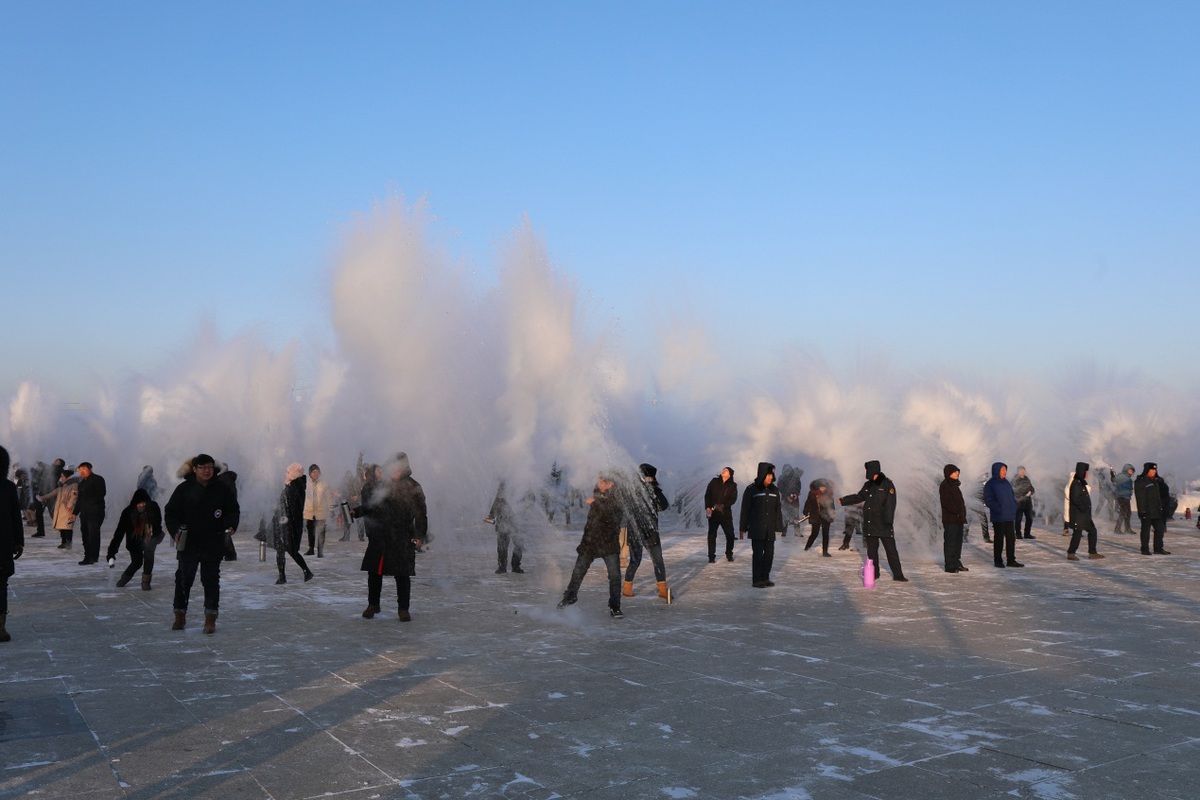 冬至是极寒天气的开始,是体验“泼水成冰”的最佳时节。在极寒低温下,将开水用力泼出,水呈抛物线的轨迹在空中划出一个圆,水和热气被瞬间凝结成冰霜、冰凌,在空中扩散成烟花一般的炫烂,寓意着最寒冷的季节冰花盛开,能驱散寒冷,祈求泼去一年的不顺和不如意,祝愿明年风调雨顺、身体康健。