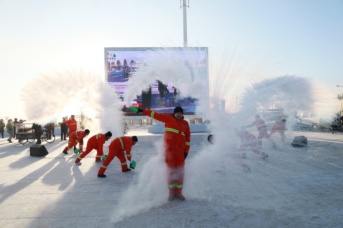 “泼水成冰”活动现场,还隆重推出了由大兴安岭地区文体广电和旅游局调研员吴剑锋作词,漠河市文化馆歌手李岩松作曲演唱的活动主题歌《泼洒梦想》。这是一首以“泼水成冰”为创作灵感的原创歌曲,全面展示了漠河冰天雪地的独特魅力和敢于挑战的无畏精神。生动形象的歌词,激昂优美的旋律,为这个寒冷冬天留下许多精彩瞬间和美好回忆。(中国日报黑龙江记者站)