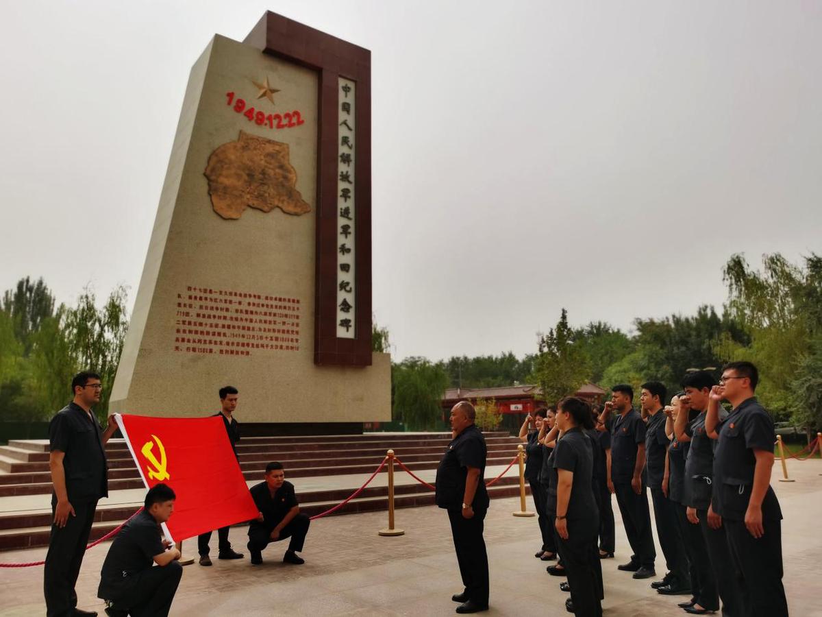 倾听着半个多世纪以来老兵们解放和田、建设和田的典型事迹、经典故事,瞻仰着老兵们使用过的枪支、衣物、农具等历史文物和照片、模拟还原的简易住所等,干警们内心无比震撼,崇敬之情油然而生。大家表情凝重地参观完展示馆后,庄严肃立在中国人民解放军进军和田纪念碑前,群情激昂地重温了入党誓词,用铮铮誓言表达着学英模、践行动的决心和信心。