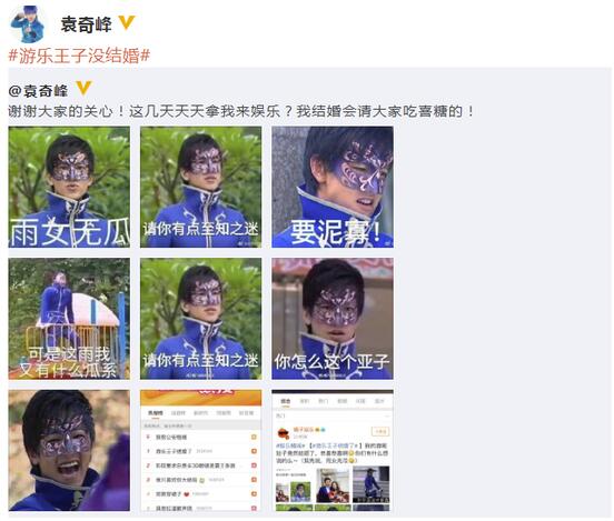 27日晚,在《巴啦啦小魔仙》中饰演“游乐王子”的袁奇峰发文回应结婚传闻,称:“谢谢大家的关心!我结婚会请大家吃喜糖的!”并自己带上了“游乐王子没结婚”的话题,可谓实力辟谣。