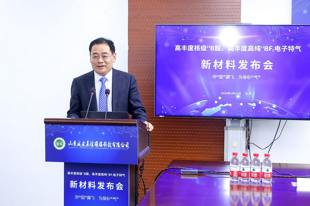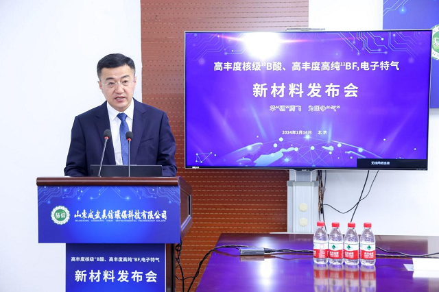 1月16日,“高丰度核级10B酸、高丰度高纯11BF3电子特气新材料发布会”在京举行。山东成武易信环保科技有限公司(以下简称“山东易信”)发布了高丰度核级10B酸、高丰度高纯11BF3电子特气新材料项目的最新进展。2023年6月该项目一期成功实现量产,2024年公司拟进一步加大投入扩大产能,实现硼同位素分离百吨级产能。