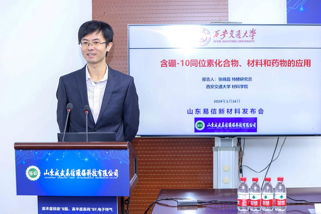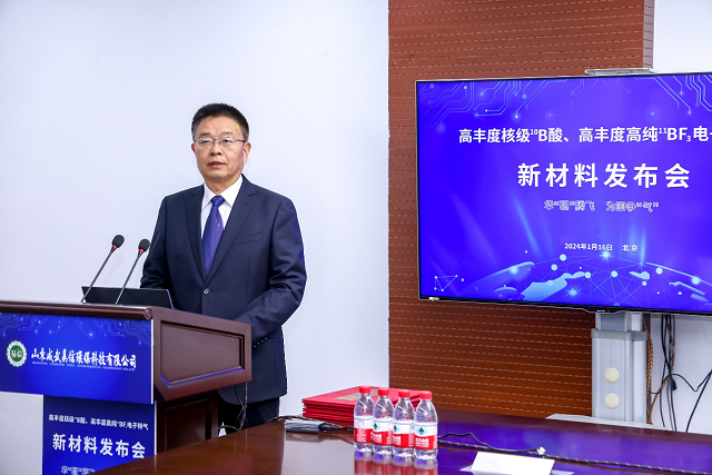 山东成武易信环保科技有限公司总经理邹志勇 在回答媒体记者提问时表示,山东易信通过产学研的合作模式,克服了传统生产工艺生产成本高、污染处理难等问题,同时获得了高丰度核级10B酸、高丰度高纯11BF3电子特气新材料。2024公司的总基调是“攻关跨越”,进一步扩大产能。目前公司在11B方面已成功开发3种产品,未来还将开发11BF3络合物产品。在10B方面,一是满足核电对10B酸的要求;二是开拓在制药领域的应用。