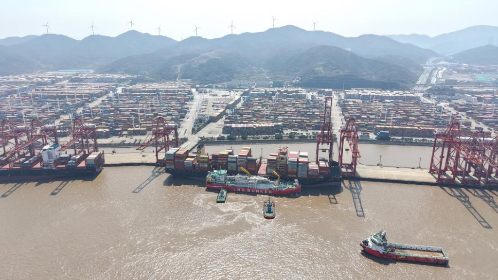“船长!船长!准备处置过程中LNG泄漏量突然增大……请指示。”3月19日12时15分,随着“求救”信号传来,宁波舟山港国际船舶LNG加注综合应急处置演练在穿山港区正式拉开序幕。经过不到半小时的科学处置,模拟险情得以控制,“泄漏”船舶安全驶离码头,全过程检验了港口LNG加注的综合应急处置能力。