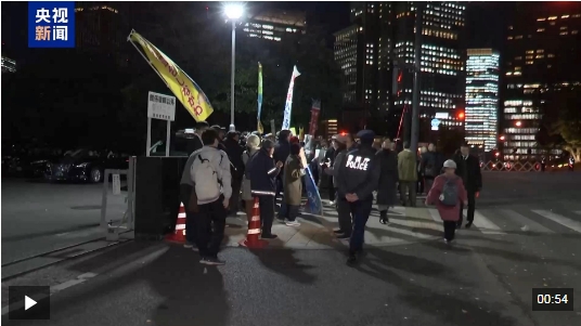 15日晚间,日本民众再次聚集在首相官邸前,强烈要求高市早苗立即撤回涉台错误言论。