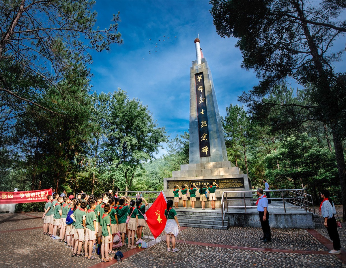 中国日报12月19日电(记者 杨飞跃)登上江西会昌盘山之巅,四周陡峭的丹霞岩壁令人屏息,唯西南一条石径蜿蜒而上。山顶却出人意料地平展开阔,苍松翠竹覆盖,形似巨大的圆盘。20多岁的导游钟伟丽将我们的注意力引向崖边的石碑,开始讲述一段英勇牺牲的故事。