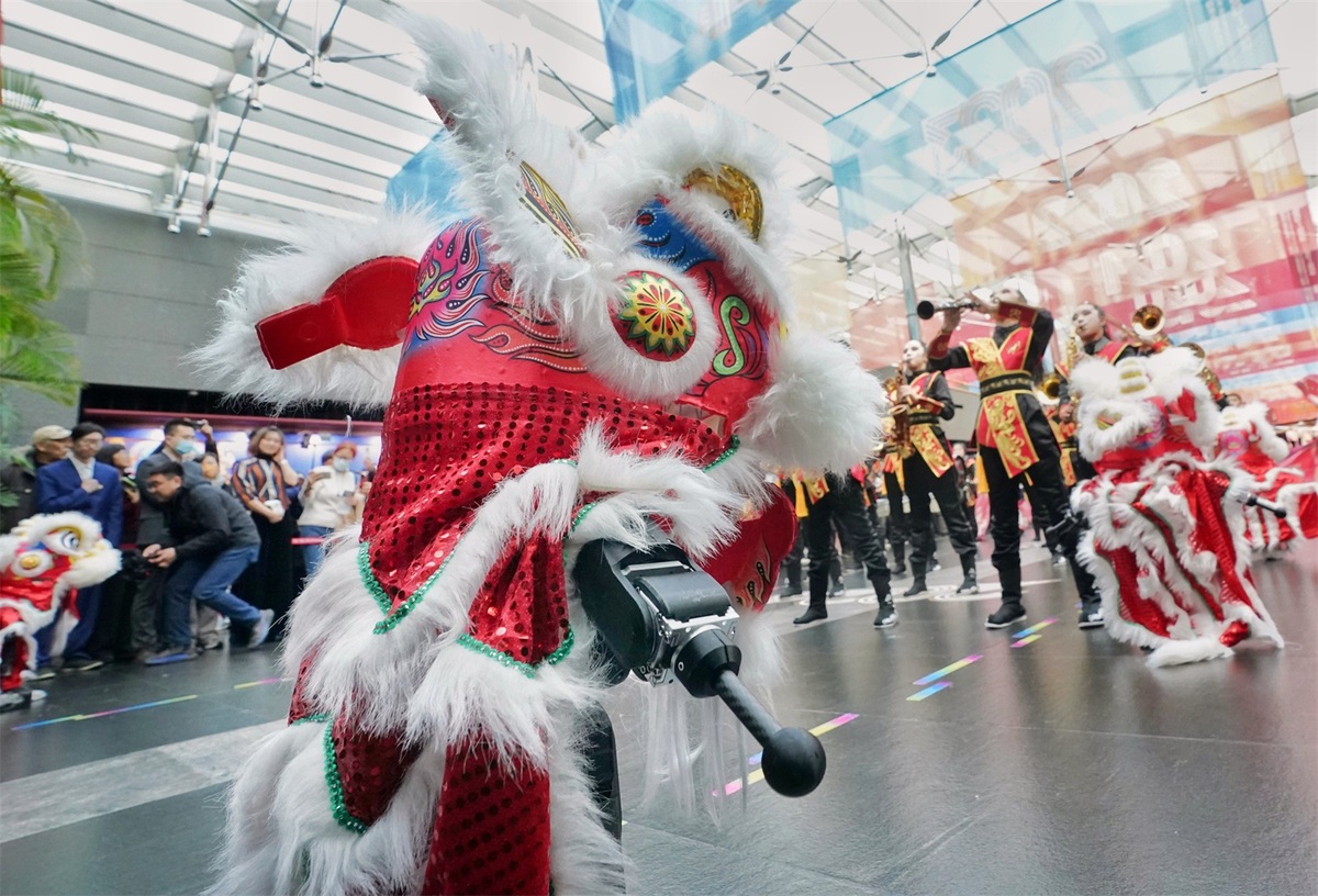 12月22日,少年行进管乐团和高擎机电机器人携手上演“人机共舞” 。中国日报记者 姜东 摄
