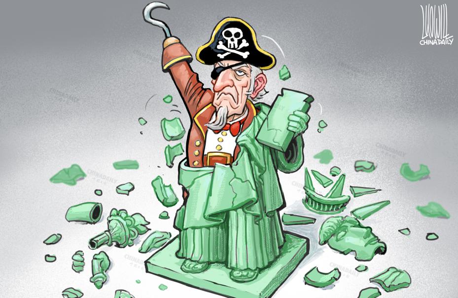 美国褪去自由民主的外衣,暴露出强盗本质。(来源:中国日报 罗杰 英文《中国日报》2026年1月15日8版)