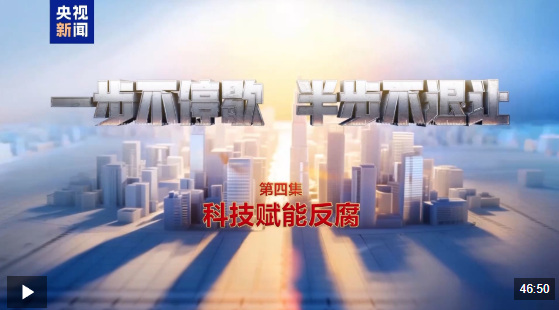 由中央纪委国家监委宣传部与中央广播电视总台央视联合摄制的电视专题片《一步不停歇 半步不退让》,1月14日在总台央视综合频道晚8点档播出第四集《科技赋能反腐》,央视新闻新媒体平台同步播发。