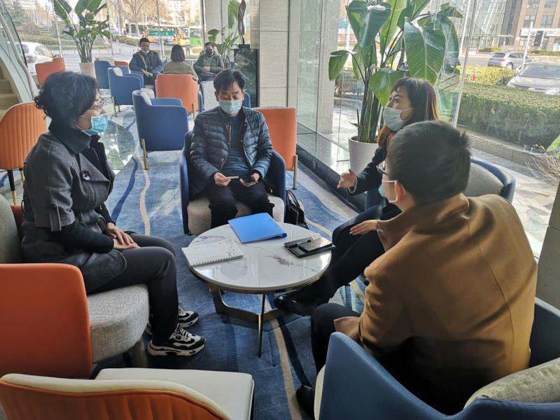 青岛市派驻市南联系服务企业工作队珠海路分队与企业就如何解决企业经营难题开展讨论 (青岛市南区委宣传部供图)