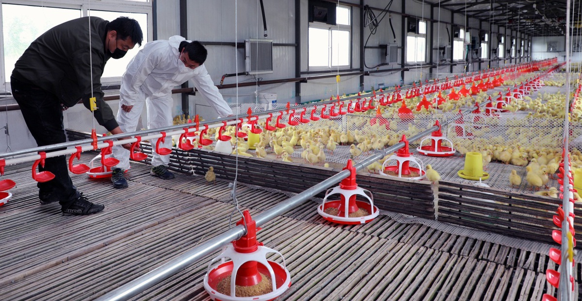 走进养殖户詹天龙的标准化鹅舍,畜牧技术员正在开展技术指导。