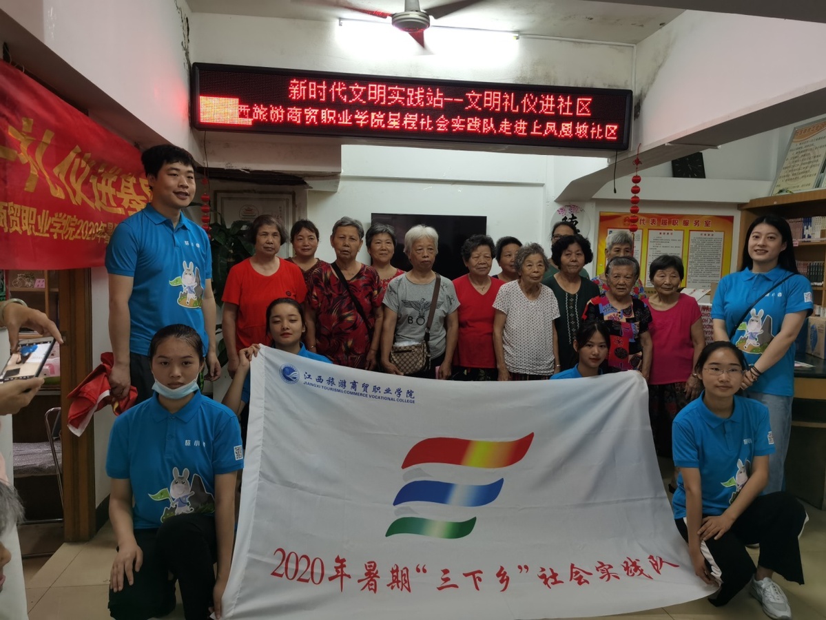 为引领广大青年学生通过社会实践引领青年学生坚定理想信念,磨炼意志品质,进一步引导青年学生走进基层,走进群众,积极投身新时代文明实践中心建设,更好的用实践践行理论。近日,江西旅游商贸职业学院星程社会实践队走进南昌市上凤凰坡社区、光明社区和朝新社区开展“三下乡”暑期社会实践活动。