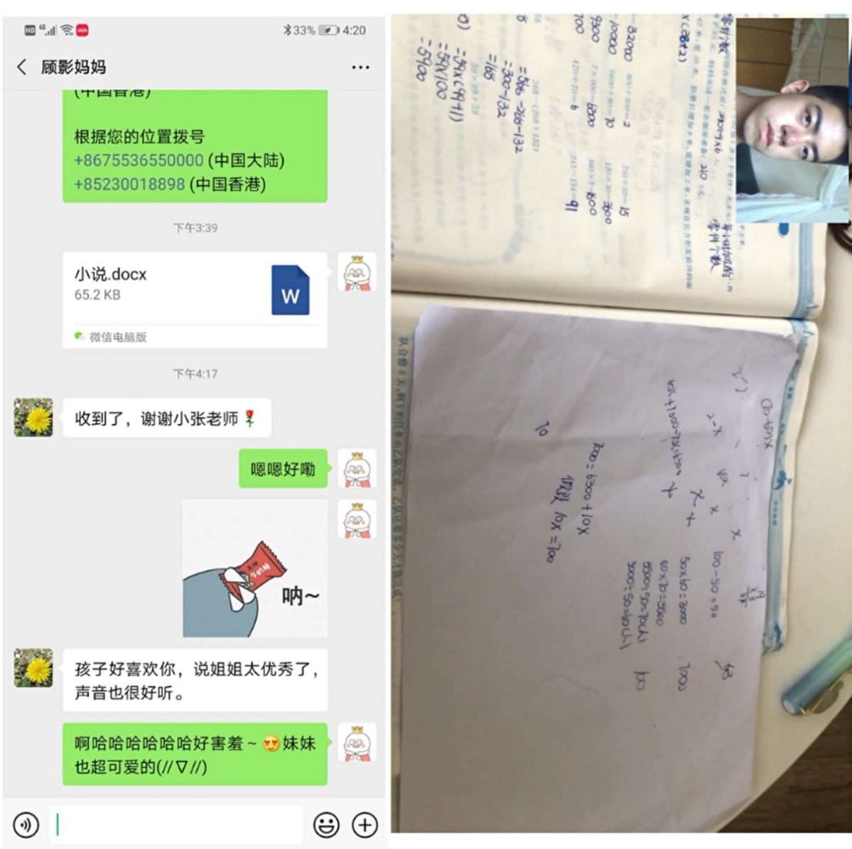据了解,自新冠肺炎疫情发生以来,由于困在家中,许多学生只得在家学习,无法到课外班接受辅导,而在家自习本身其考验学生个人的自制力和时间管理能力。同时随着各类升学考试的竞争日益激烈,那句“假期用来弯道超车”已经成为了现实。面对长达近两个月的暑假,对于城市的家长来说,是忙碌中无法照看孩子的苦恼;而对于农村的孩子来说,则是高额的补习费。徐浩天向记者表示,之所以组建“与禾齐飞”团队,开展线上支教辅导活动的目的,一是想通过义务授课的形式,通过讲授新知识,分享学习经验的方法,让孩子们度过一个充实的假期并提升他们的自我学习能力;二来也是为抗击疫情献上自己的一份独特力量。