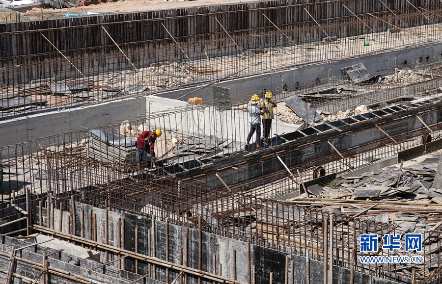 这是建设中的厨余垃圾处置厂项目,工人正在工地上浇筑泥浆。新华网 肖和勇 摄