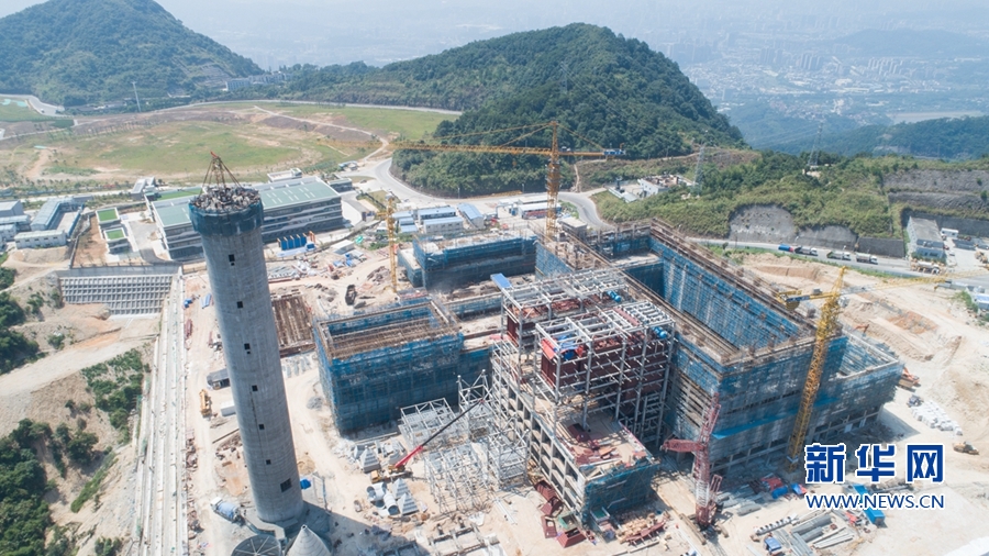 这是建设中的生活垃圾焚烧协同处置项目(无人机照片)。新华网 肖和勇 摄