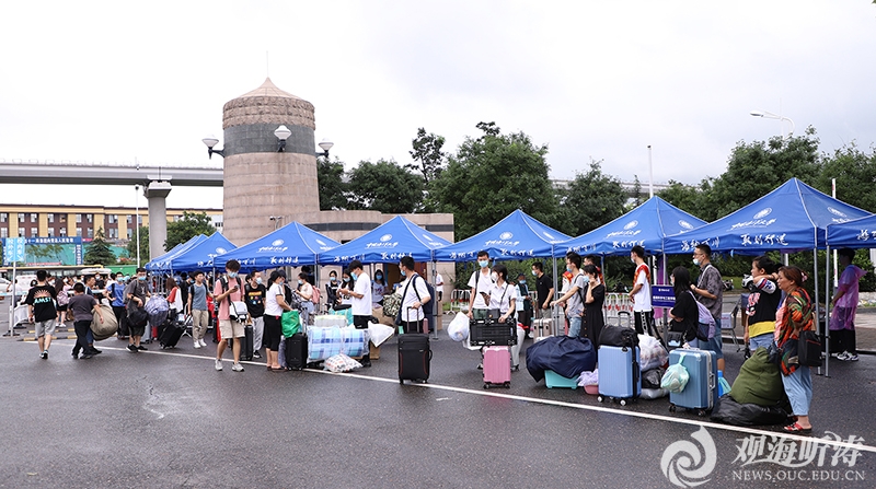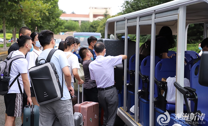 秋雨见凉,关怀暖心。在各迎新点,由不同学院师兄组成的志愿者热情主动、风雨无阻,为新生答疑解惑、搬运行李,解除新生入校困难;保卫人员耐心引导、精准调度,确保校园安全和入校秩序;后勤服务人员积极做好校园保洁、餐饮供应、住宿安排、交通运行、医疗救助等保障工作,努力为新生营造舒适的生活、学习环境;为了方便新生首次入校,学校在崂山校区和鱼山校区内安排了摆渡车辆,循环运转,帮助新生携带行李自核验点直达宿舍区,每一处细节背后都是无微不至的关怀,大家用心用情的服务,把一股股暖流注入到每一名新生及亲友的心头。