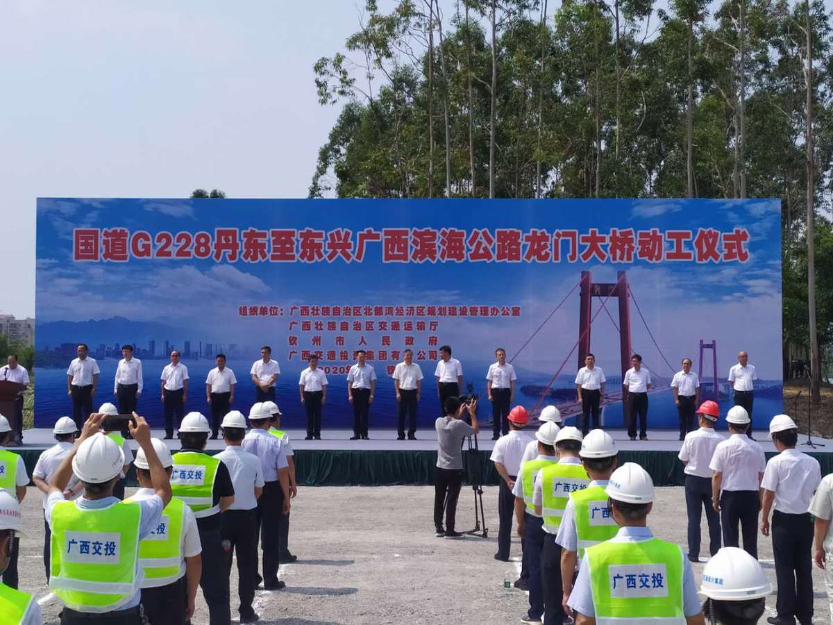 8月31日,广西最大跨海大桥、北钦防一体化“卡点”工程广西滨海公路龙门大桥动工仪式在钦州市隆重举行。自治区副主席周红波出席仪式并宣布——龙门大桥正式动工!随着第一根桩基础开始施工,广西交通投资集团有限公司投资建设的广西滨海公路龙门大桥拉开了实质性动工建设帷幕。