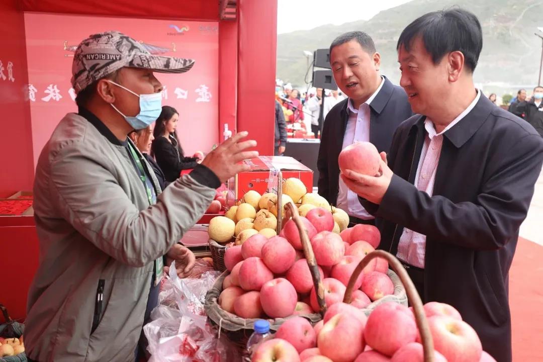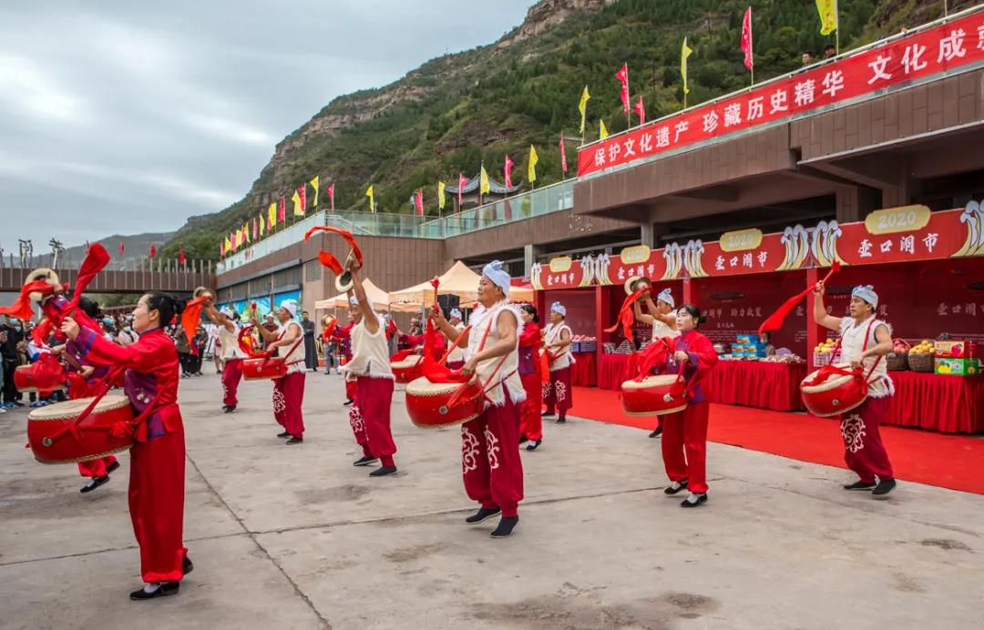展销区热闹非凡,摆满了琳琅满目的特色农产品,舞龙舞狮、宜川胸鼓、壶口斗鼓等当地民间演艺轮番上阵,引来了阵阵掌声;景区还在现场还搭起直播间,网红主播们为特色农产品直播带货,花样繁多的销售模式,呈现出旅游带动农产品火热销售的场景。