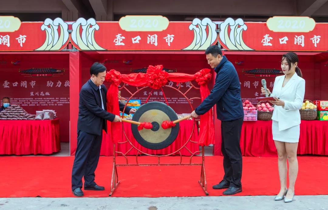 县委书记左怀理,陕旅集团壶口文旅公司党支部书记、董事长、总经理国小强为壶口闹市击锣开市