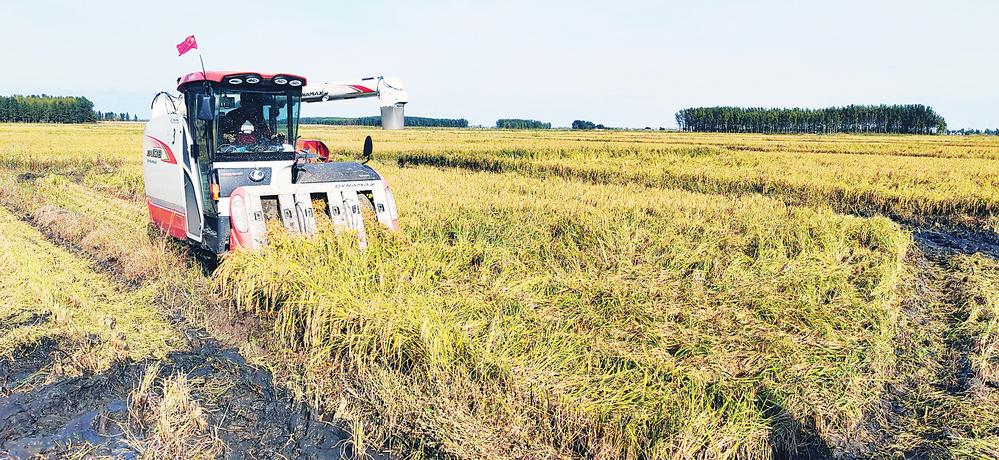 金风送爽五谷香,平畴沃野遍地黄。连日来,我省广大农民忙碌在田间地头,收获着一年的劳动成果。这是四平辽河农垦管理区大林子种植农民专业合作社在机收水稻。 常中敏 本报记者钱文波摄