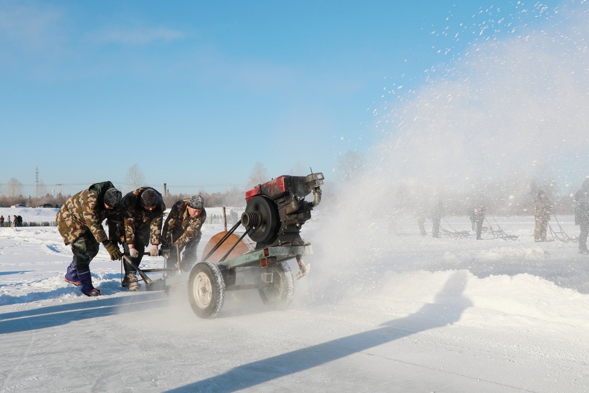 天刚刚透亮,漠河的“老槽河”上传来了轰隆隆的各类采冰机器轰鸣声,200余名采冰人员正在寒冰覆盖的河面上紧张忙碌着。大锯割条,小锯切块,30多厘米厚的冰面被锯切割成80厘米长、40厘米宽的长方体,每块重量都得200斤左右。采冰工人用铁钎子将冰块彻底分离,再用铁钩子将冰块翻转一周,洗个“凉水澡”,最后用专门的捞冰“铁爬犁”将冰块从水里拖上来,运到晾晒场地装上卡车,转运到“北极漠河冰雪大观园”建造场地,周而复始。据漠河市防火办主任于文生介绍说,采冰看着挺简单,却是个技术和体力都要求过硬的活儿,参加采冰工作的都是一些年轻力壮的队员。现在天黑的比较早,大家都是加班加点的干,每天大概能采2000多块冰。