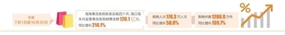 统计数据更具说服力:今年7月1日至10月31日,海南离岛免税新政实施四个月海口海关共监管离岛免税销售金额120.1亿元,同比(下同)增长214.1%;购物人次178.3万人次,增长58.8%;购物件数1286.9万件,增长139.7%。