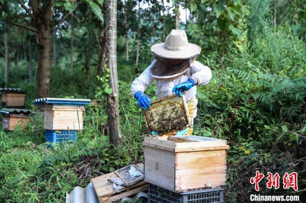 图为紫云自治县国有浪风关林场“林下蜂养殖”。 刘鹏 摄