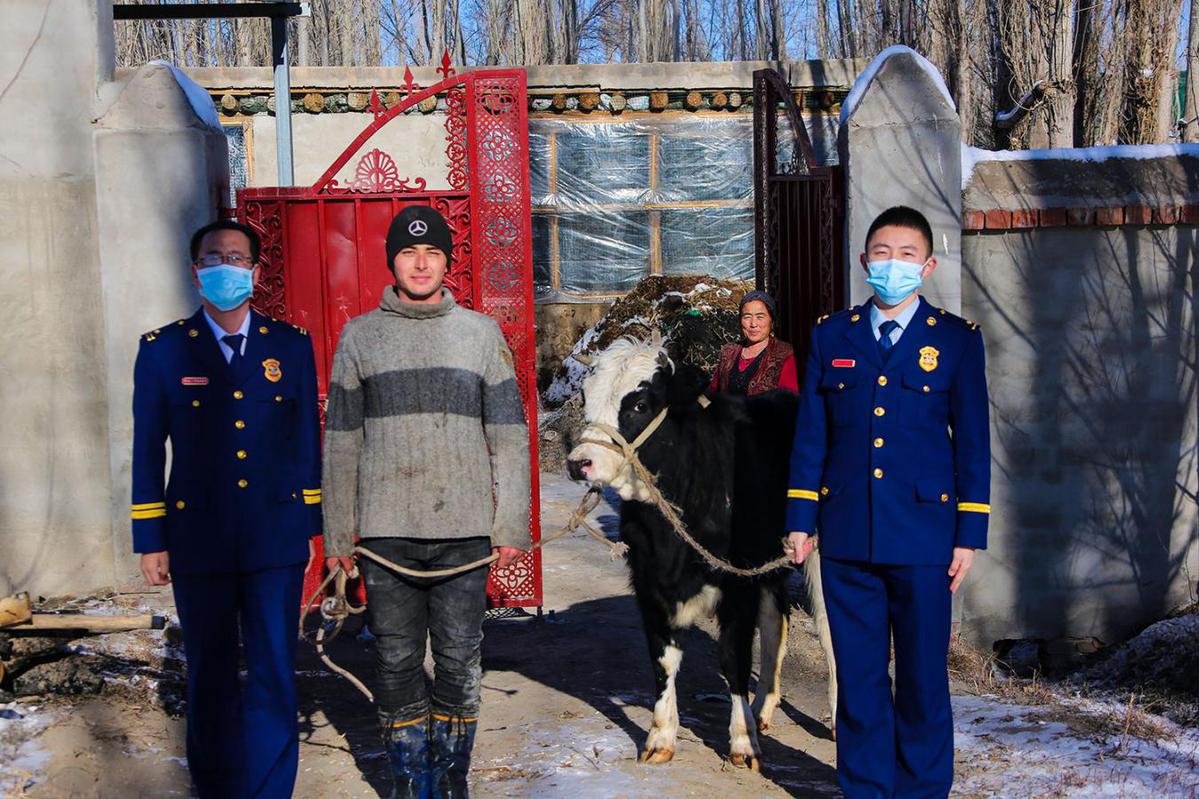 该支队了解情况后,对他家情况进行了评估,为他家送来牛羊的同时,还为他普及了防火知识。