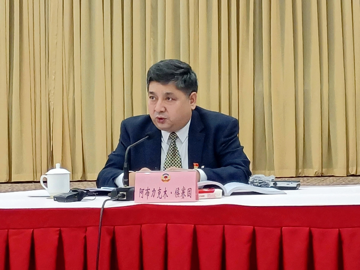 政协委员、新疆品牌经济研究院院长、高级经济师阿不力克木·候赛因回答记者提问