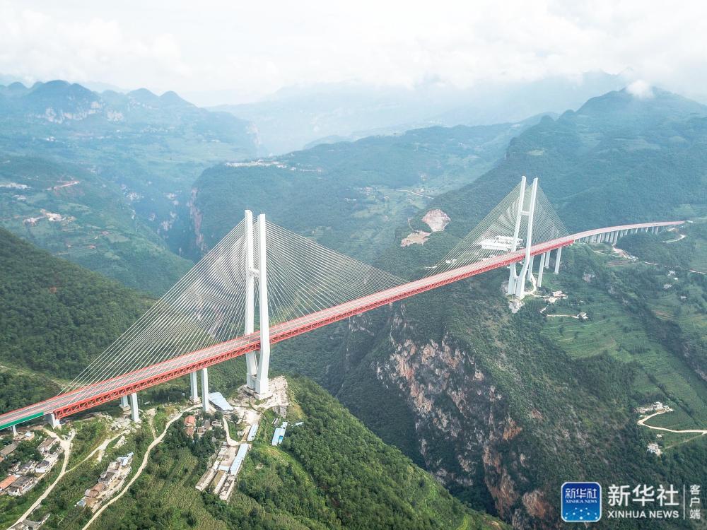 这是位于贵州、云南交界处的杭瑞高速北盘江大桥(2018年8月10日摄,无人机照片)。新华社记者 陶亮 摄