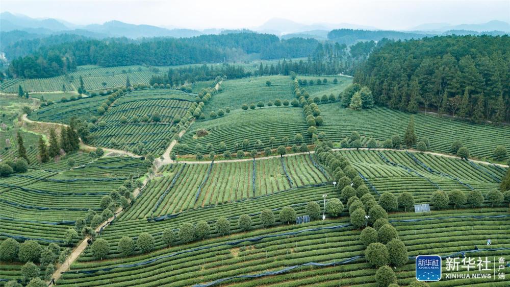 贵州省遵义市凤冈县茶海之心景区一隅(2019年3月25日摄,无人机照片)。新华社记者 陶亮 摄