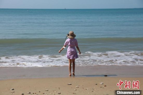 一位游客面朝大海享受三月温暖时光。 天涯海角景区供图