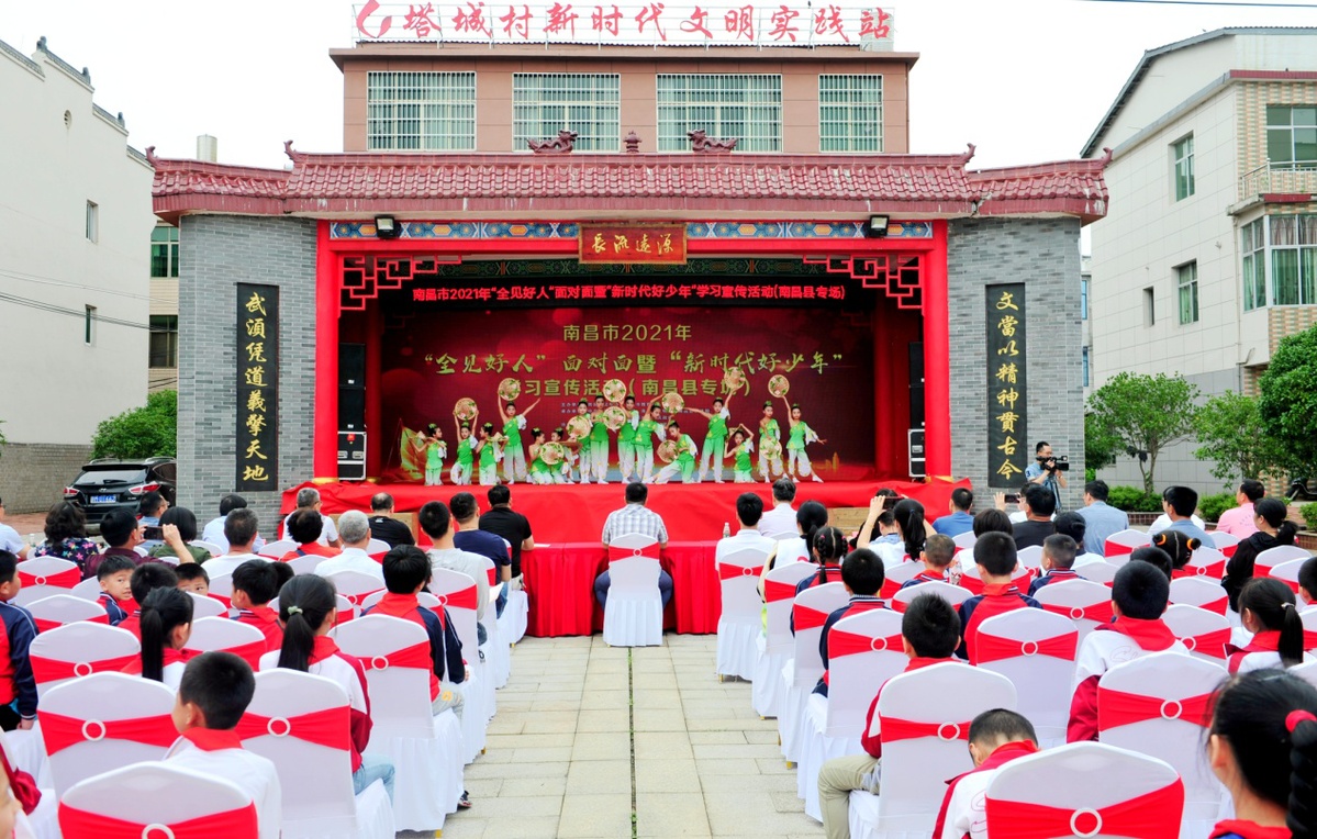 为深入宣传“新时代好少年”和道德模范、身边好人事迹,激发青少年自觉弘扬中华传统文化的热情,丰富群众精神文化生活,传递社会正能量,6月4日,南昌市2021年“全见好人”面对面暨“新时代好少年”学习宣传活动(南昌县专场)在南昌县塔城乡塔城村新时代文明实践站举行,活动邀请了该县道德模范、“中国好人”万云,“江西好人”陈骑斌到场交流,并现场为“江西省新时代好少年”龚智俪颁奖,当地300多名学生代表及群众参与了活动。