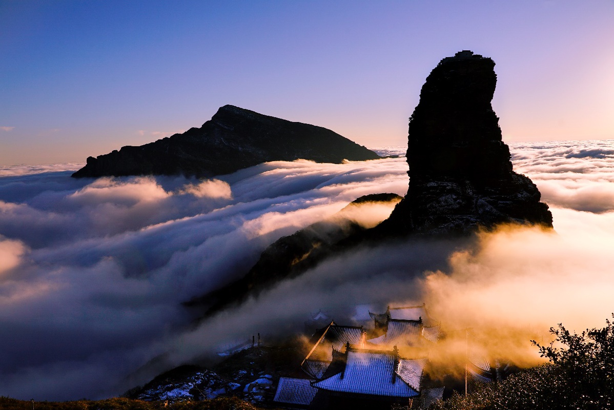 位于贵州省铜仁市境内的梵净山,是武陵山脉主峰,除了雄奇壮美的自然风光,这里还有地球同纬度上保存最完好、最典型的原始森林,繁衍着野生植物和动物7154多种,植被覆盖率达95%以上,享有“植物王国生物资源基因库”的美称。还是黔金丝猴和梵净山冷杉在地球上的唯一栖息地。