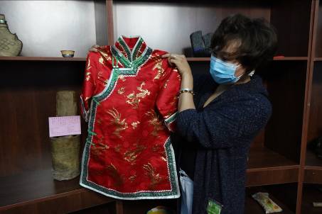 和静县克尔古提乡浩尔哈特村的易茹在该本民俗馆里,展示牧民刺绣的上衣。邹焰忠 摄