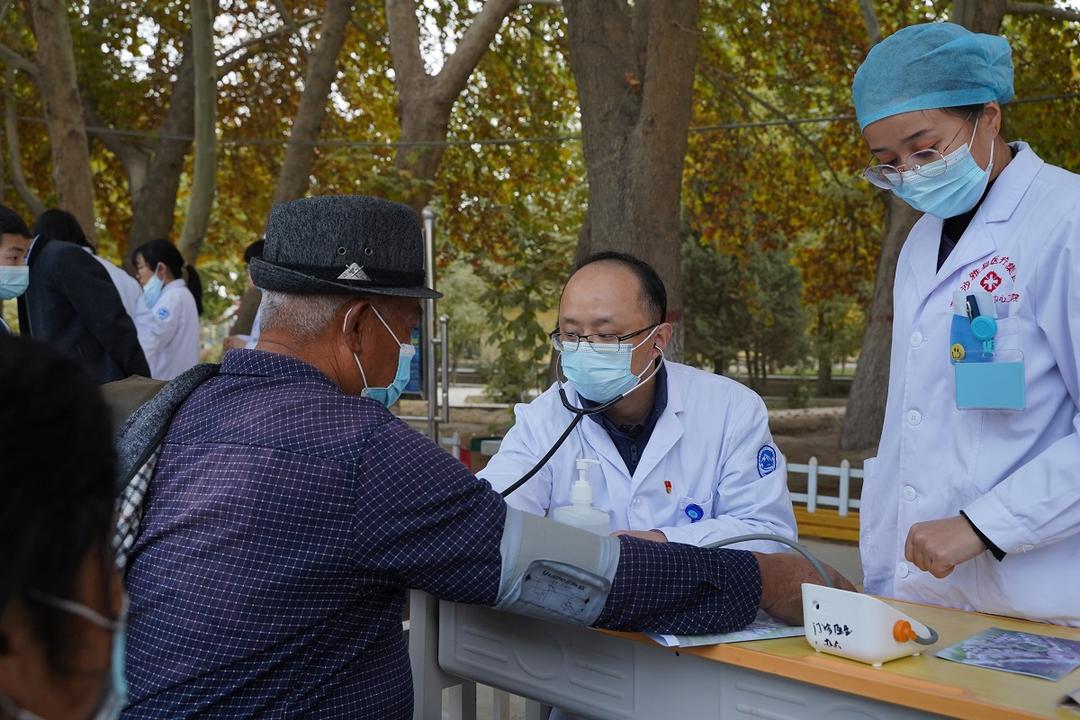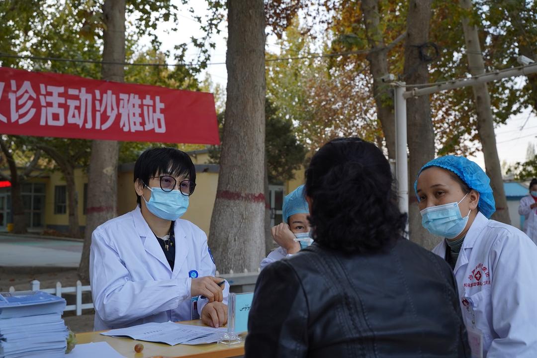 10月30日,浙江援疆“医疗大巴扎”来到位于塔里木河边的新疆沙雅县,在沙雅医疗集团托依堡勒迪镇中心卫生院,开展为群众举行义诊和健康筛查服务。