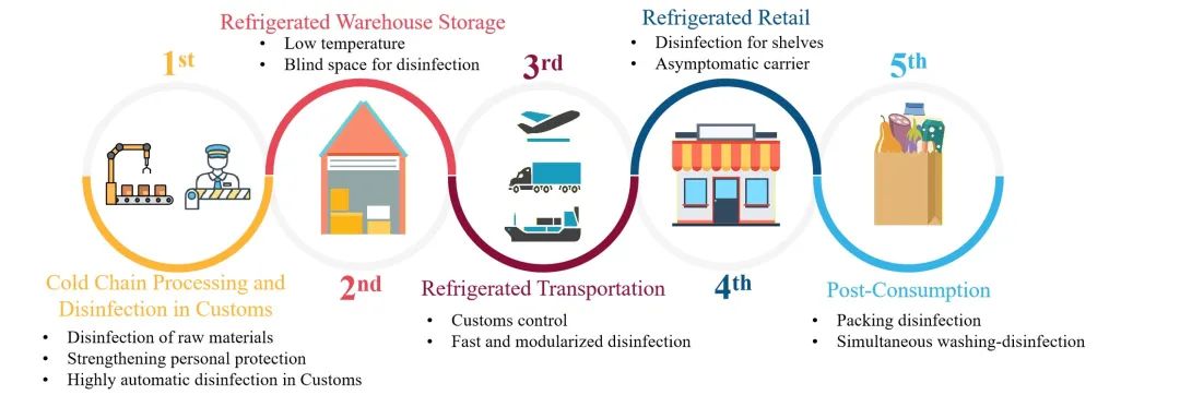 中国—世卫组织新冠病毒溯源联合研究报告将通过冷链食品运输引入人群列为“可能”的疫情起源与传播途径。由于低温环境有利于病毒的长期存活,因此通过接触被污染冷链货物或低温条件下经过跨国货物运输导致感染的“物传人”传播方式,可能在新冠肺炎疫情的发生和传播过程中起到关键作用。