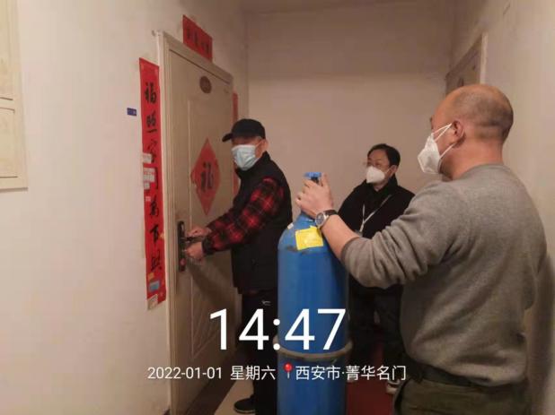 1 月 1 日,菁华名门十九号楼二单元901 业主在朋友圈求助:其母亲肝硬化失代偿期加骨折卧床,需长期吸氧维持氧饱和度。在与医疗公司人员联系后,被告知氧气库房均分布在咸阳、临潼等跨区域地境,疫情管控期间无法配送,家里老人已近一周未能吸氧,危及生命,急需大罐医用氧气。