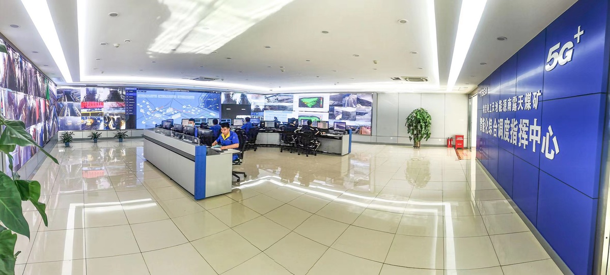 2019年,企业正式开展智慧矿山建设,通过5G技术搭建工业互联网综合预警平台,建设智能化综合调度指挥中心,一间只有七八个人的总控室,就能实时监控调度矿山的整体运行,每天的作业人员由之前的3000人节约至600人,这不仅极大解放了人力,也在安全效率方面有着进步作用。