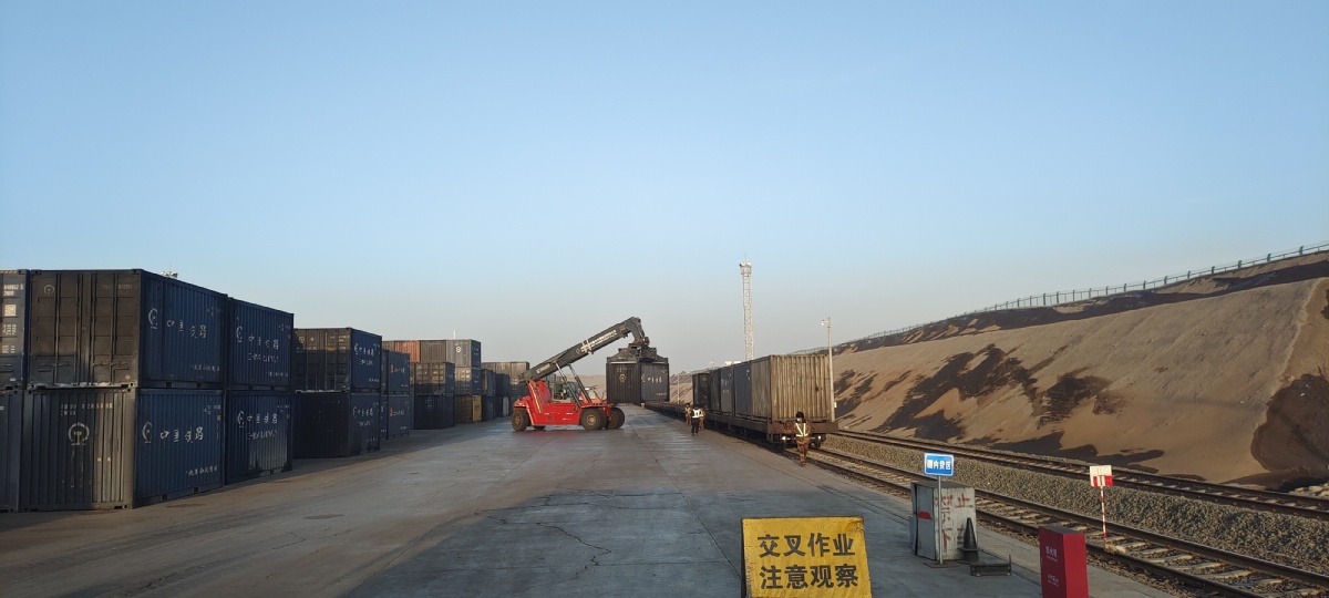 块煤集装箱正在有序装车发往南疆 白玉林摄